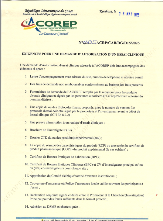 L’Acorep vient de rendre public les éléments que doit contenir un dossier de demande d’une Autorisation d’un Essai Clinique.